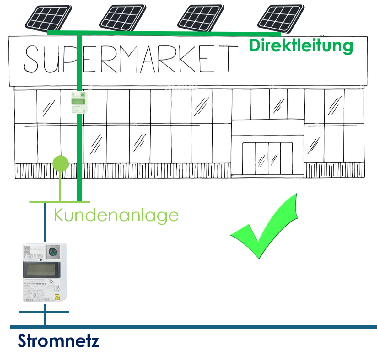 Abbildung 1: Direktleitung der PV-Anlage an Kunde (Supermarkt)